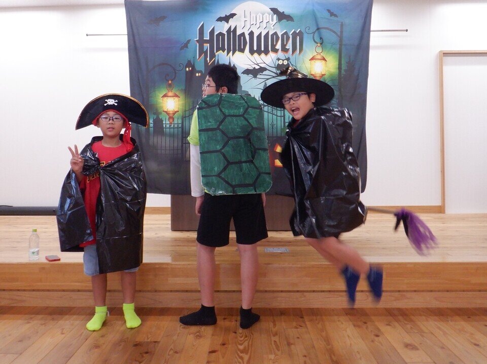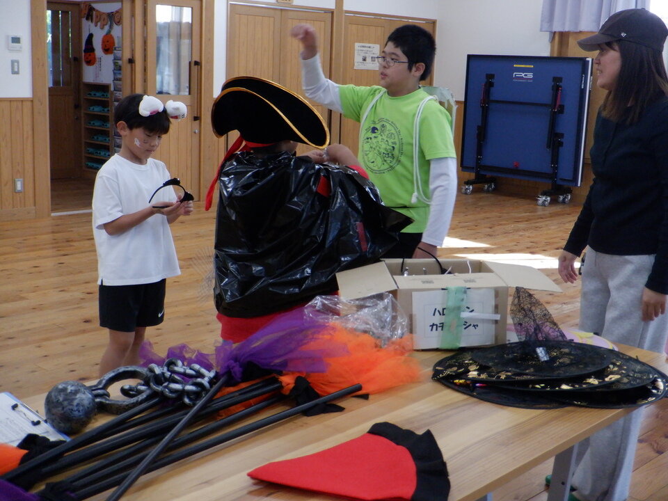 衣装を作りたい人は公民館に8時に集まり、色々な材料を使ってオリジナルの仮装を作ります。