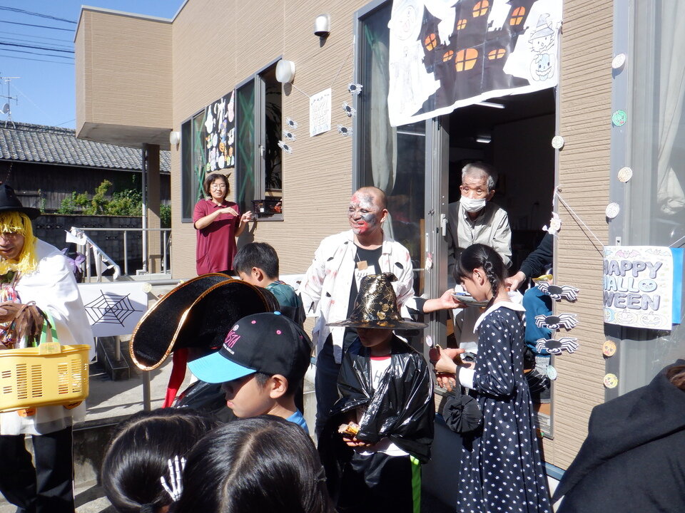 高齢者施設では、入居者の皆さんが笑顔でお迎えです。子ども達に笑顔でお菓子を渡してくれました。職員の皆さんも手作りの飾りつけや仮装をして出迎えてくれました。ありがとうございました!![]()