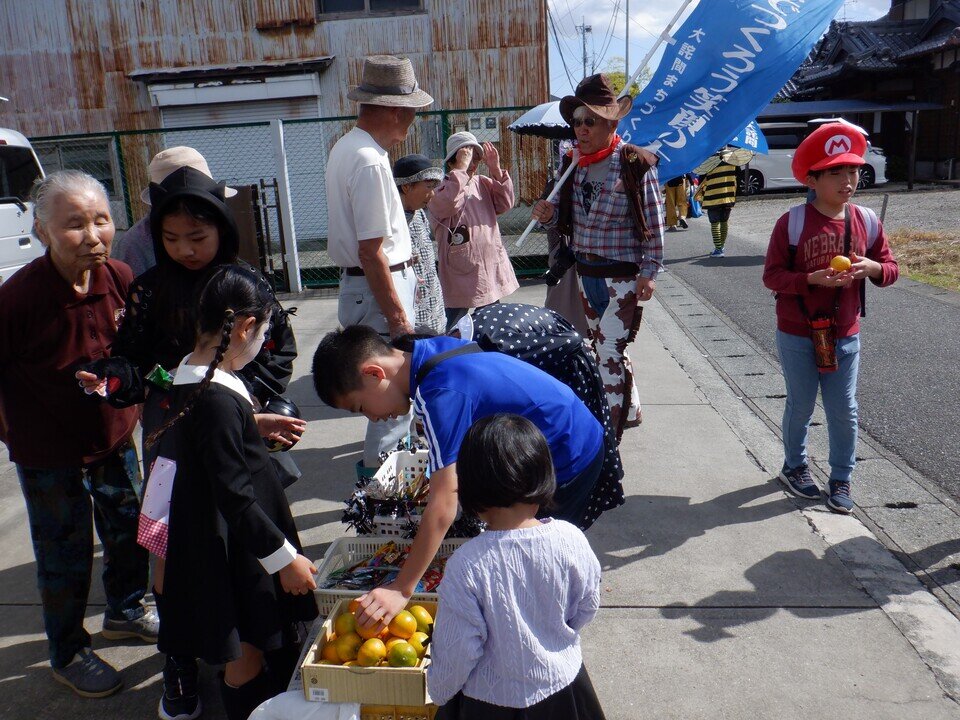 先々で地域の皆さんがお菓子を用意されていました。ゴールに近づくころには、みんな両手にたくさんのお菓子を抱えていました。![]()