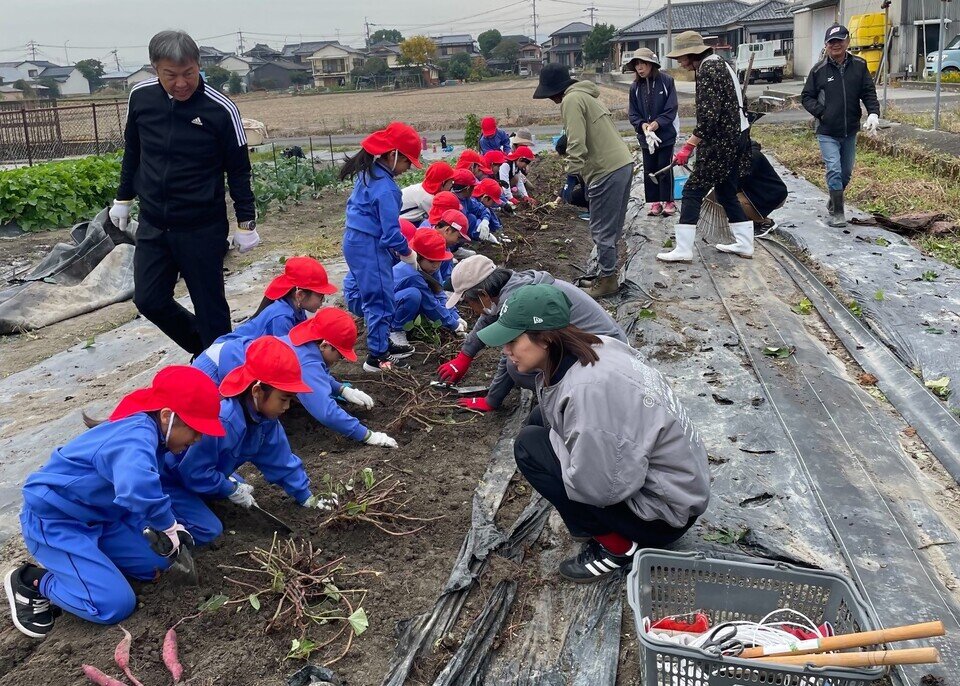 11月13日(木)にまちづくり協議会暮らし絆部会のふれあい農園でサツマイモを収穫しました。この活動は大詫間小学校1・2年生の子ども達と一緒に苗植えから収穫まで行っています。