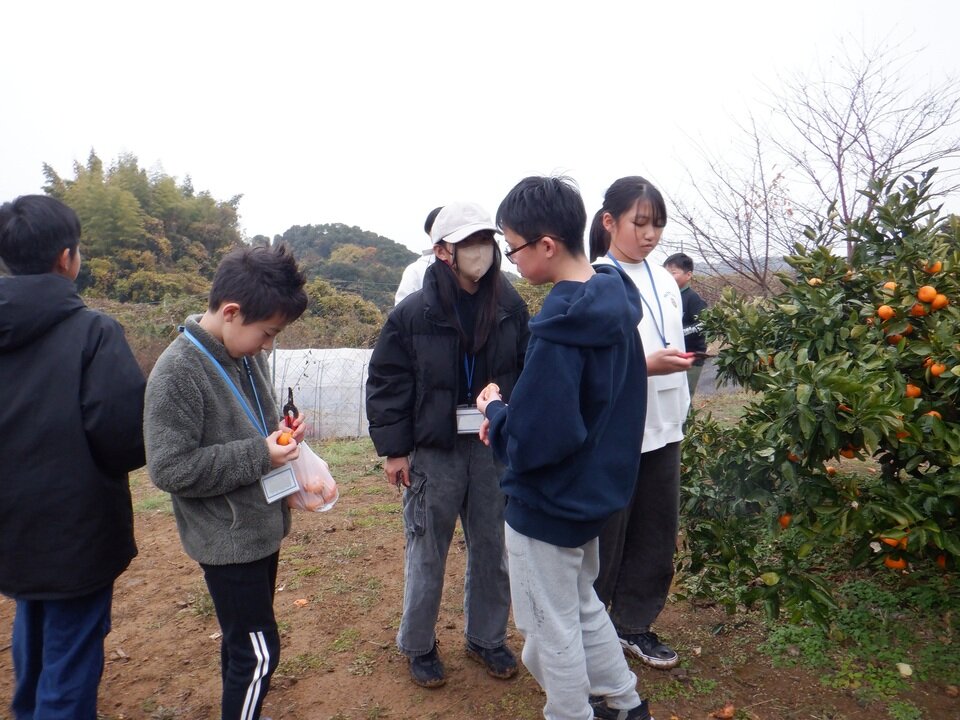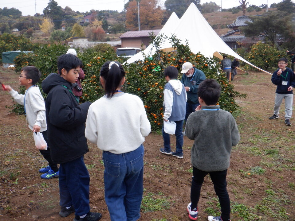 中には食べることに夢中になり、時間が来ても袋にみかんを入れておらず慌てている子もいました。![]()