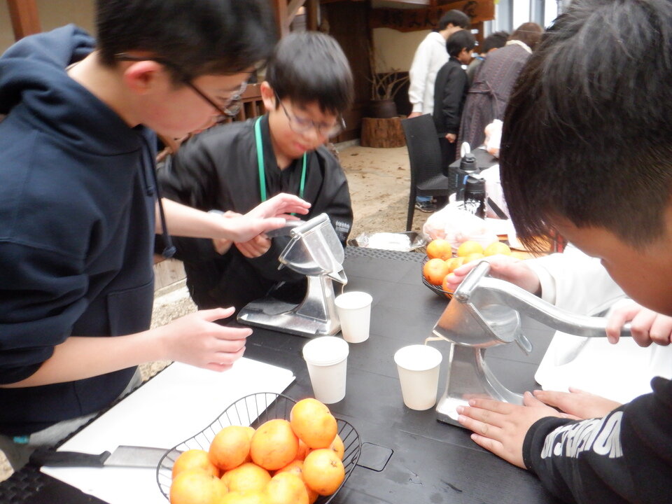 次はとれたてのみかんを使ったジュースの生絞り体験です。