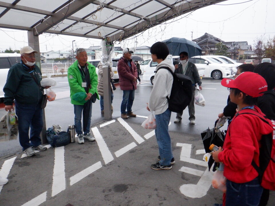 公民館に到着して解散式を行いました。6年生の一人が代表で大人の皆さんに