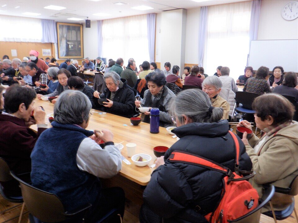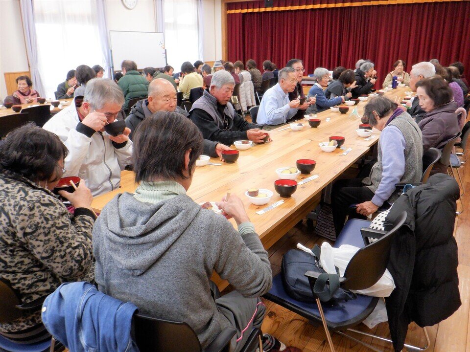 たくさん楽しんだ演目後は、大詫間食改協の皆さんによるぜんざいと、暮らし絆部会ふれあい農園の皆さんによるふかし芋のふるまいがありました。温まって美味しいと大変喜ばれていました。![]()