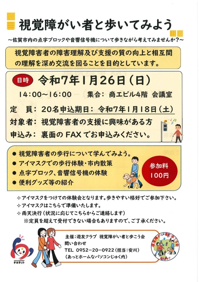 ~佐賀市内の点字ブロックや音響信号機について歩きながら考えてみませんか?~