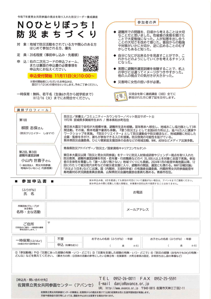令和7年度男女共同参画の視点を取り入れた防災リーダー養成講座