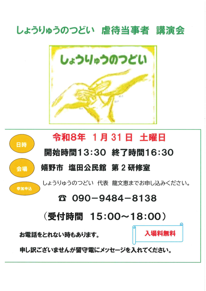 しょうりゅうのつどい 虐待当事者 講演会