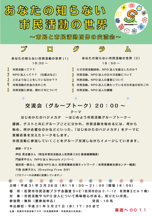 テーマ「はじめかたのハジメカタ ~はじめよう市民活動グループトーク~」