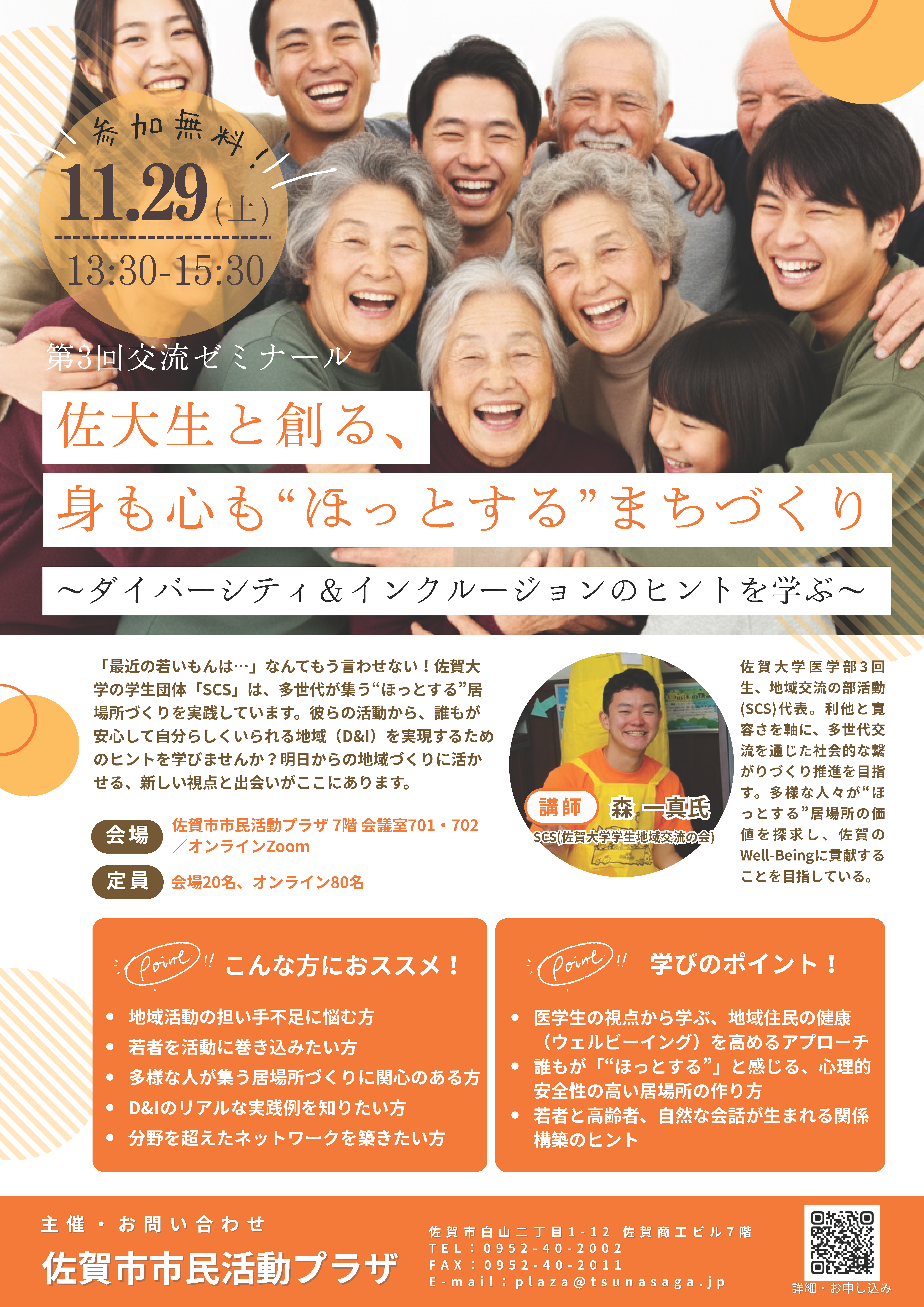 「つながり」が心身の健康に与える影響など、SCSならではのユニークな視点に触れることができます。誰もが「"ほっとする"」と感じる、心理的安全性の高い居場所の作り方 D&Iの本質は、誰もが安心して「素のまま」でいられる空間づくりにあります。参加者が自然と心を開く、温かい場の"空気感"をデザインする秘訣を探ります。 若者と高齢者、自然な会話が生まれる関係構築のヒント 世代間の壁を越え、フラットな関係を築くために彼らが大切にしていることは何か?明日からすぐに真似できる、コミュニケーションのヒントが満載です。