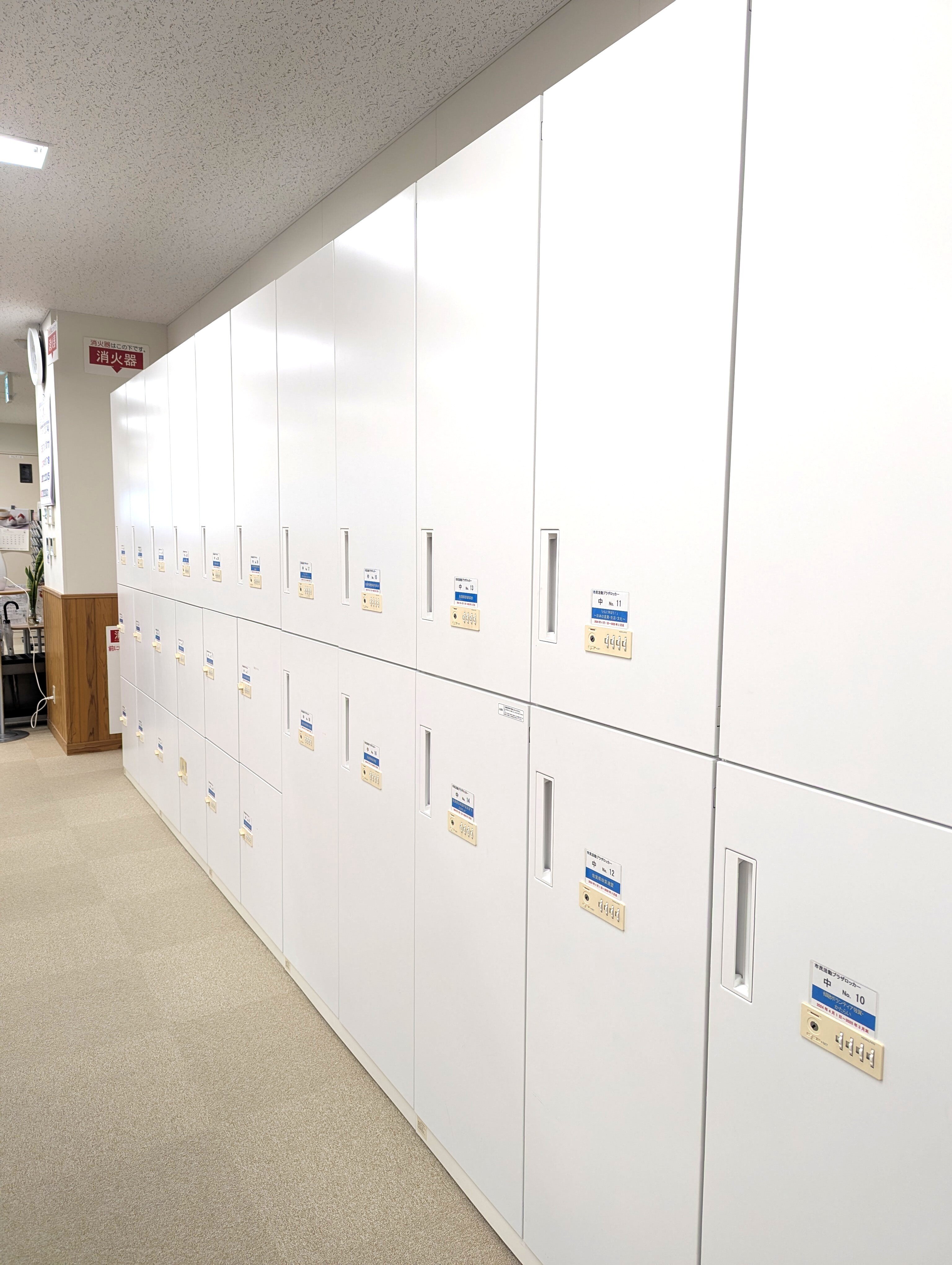 ロッカー(大): 月額 500円[募集数:5](サイズ:約 W900×D420×H1000 mm) ロッカー(中): 月額 300円[募集数:42](サイズ:約 W450×D420×H1000 mm) ロッカー(小): 月額 200円[募集数:48](サイズ:約 W450×D420×H520 mm)