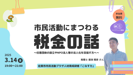 佐賀市市民活動プラザでは、市民活動人材の育成事業として市民活動のチカラになる研修(組織力強化研修)とタネになる講座(社会課題別講座)を開催しています。何れも参加無料。どなたでも参加できます。
