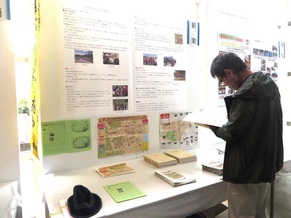 わが新栄校区でも、「まち協ニュース」、「ふれあい歴史マップ」、「歴史マップ作成資料集」、「防犯防災安全マップ」、今年完成した八戸城想像復元図を記念して作成された「八戸城ものがたり」などを展示しました。資料を手に取り、関心をお持ちになられた他校区の方々との会話がなによりの収穫となりました。