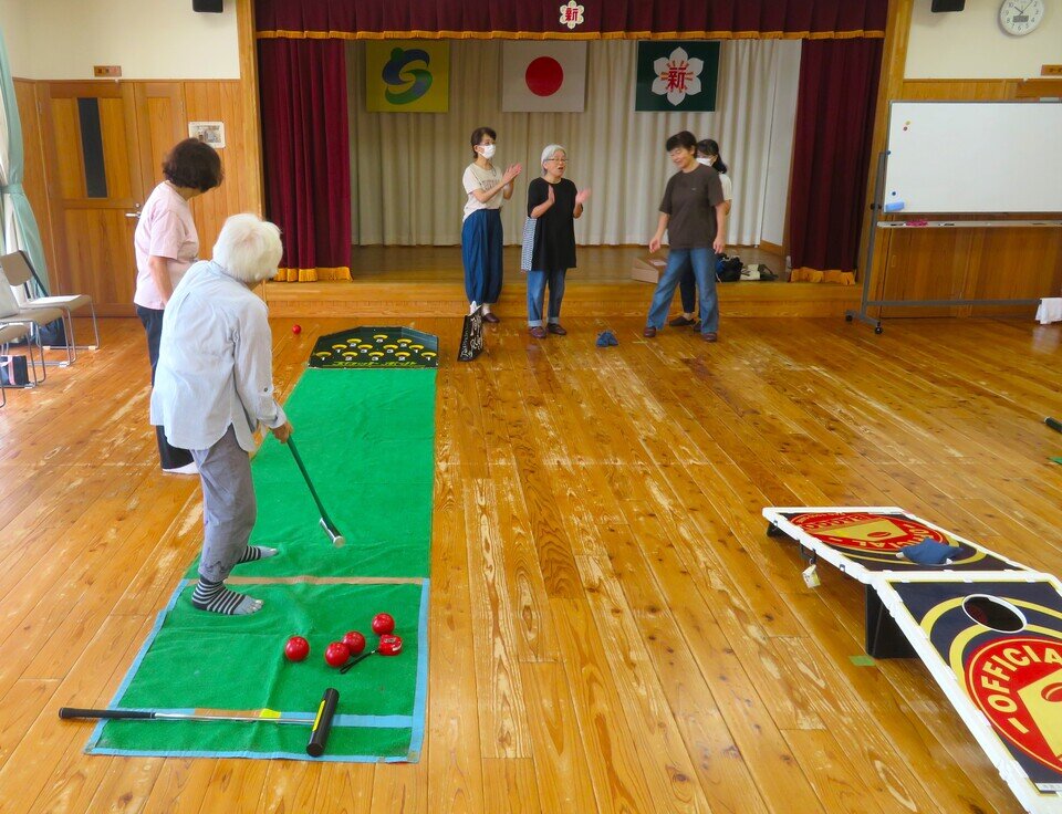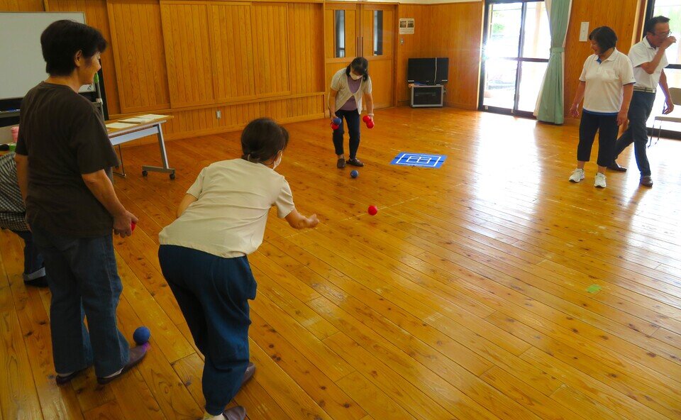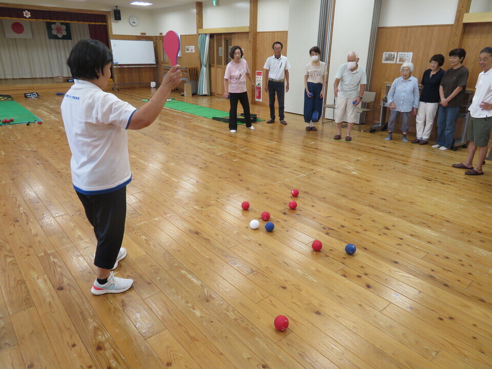 スポーツ推進員歴15年のベテラン江口春代さんにスカットボール、バッコー、ボッチャを指導していただきました。
