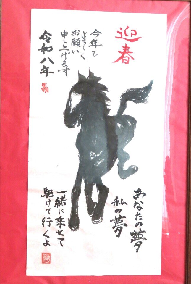 「新栄絵手紙サークル」のみなさんがすてきな年賀状の絵手紙を飾ってくださいました。