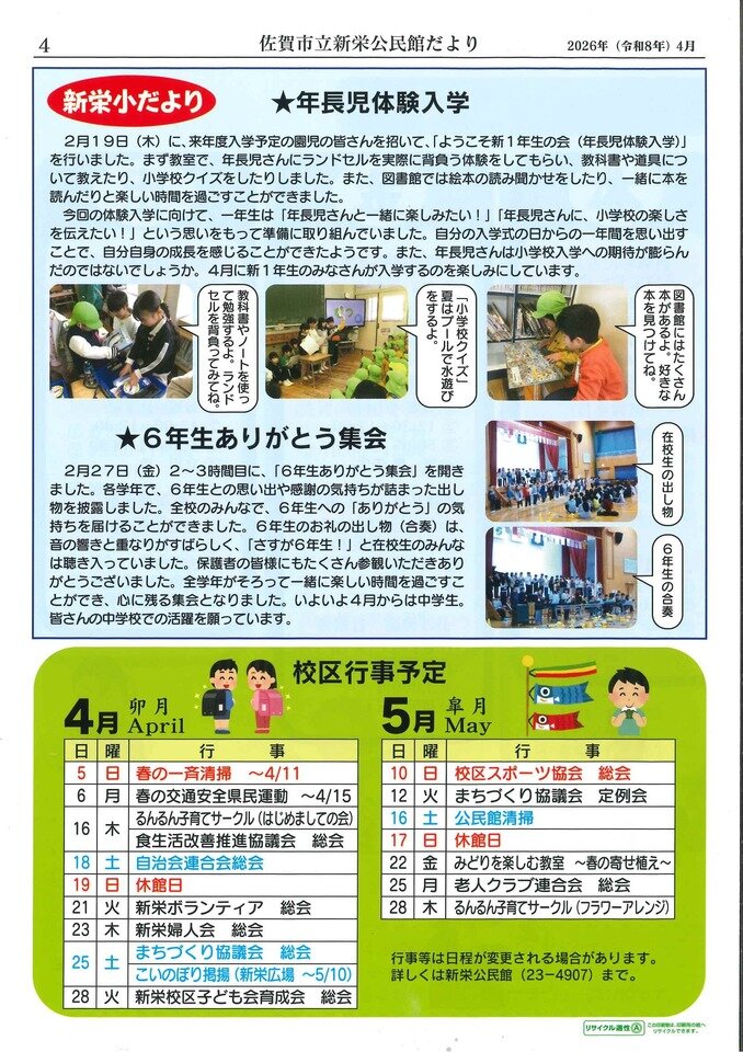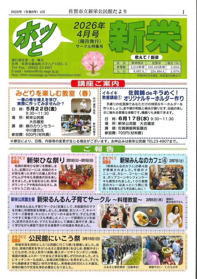 新栄公民館だより「ホッと新栄2026 4月号」を発行しました。