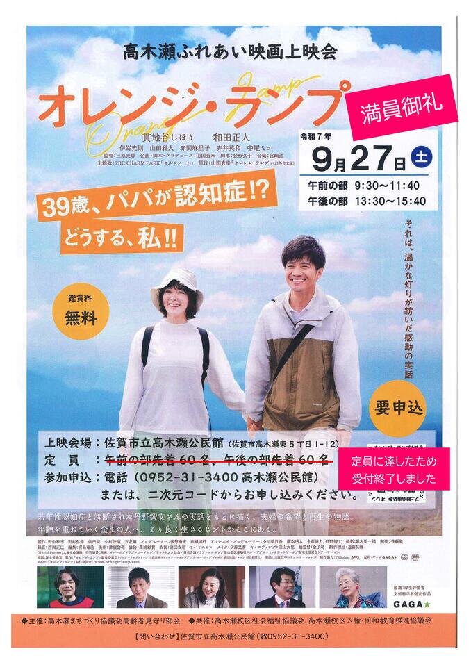 「オレンジ・ランプ」上映会は、午前の部・午後の部とも、満席となりましたので、参加申し込みの受付を終了いたします。