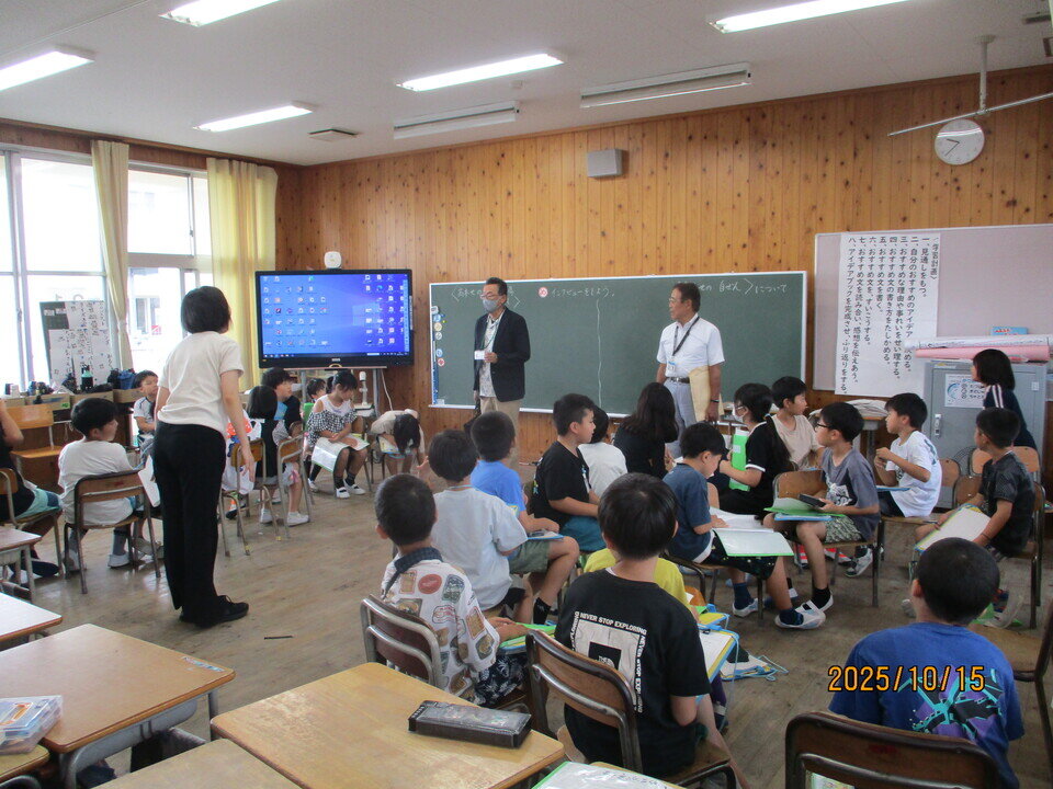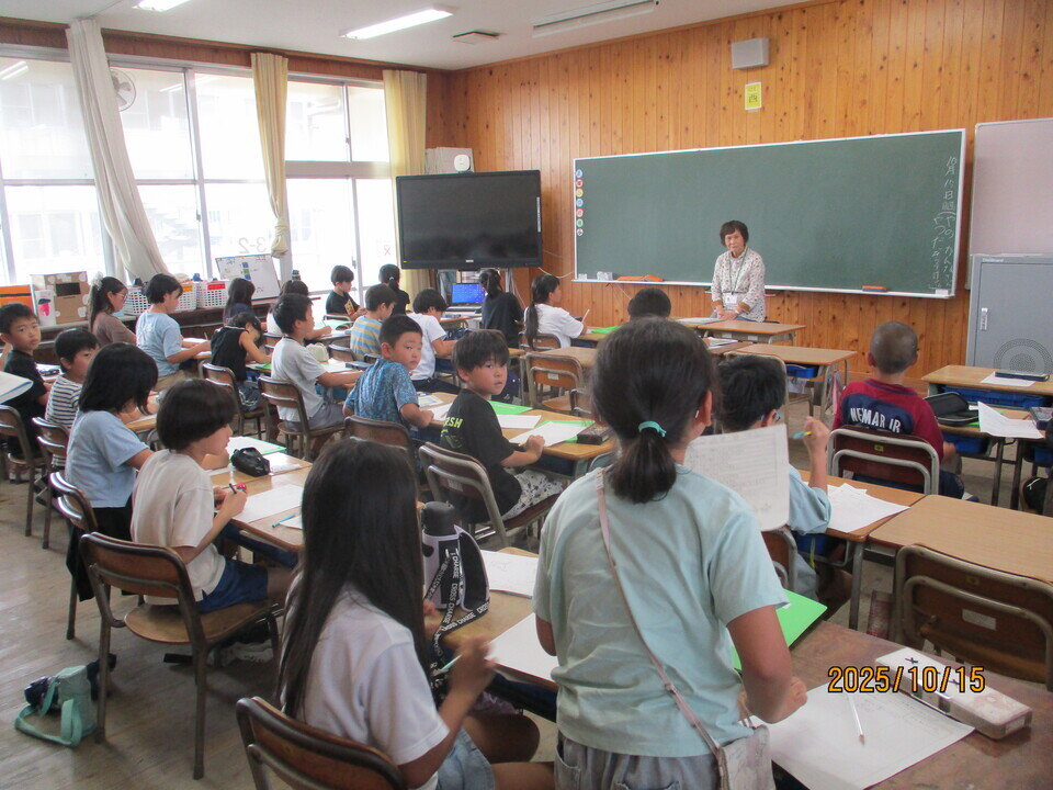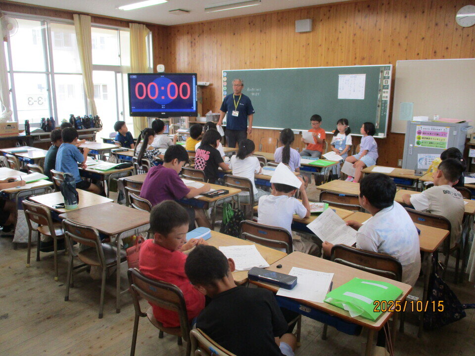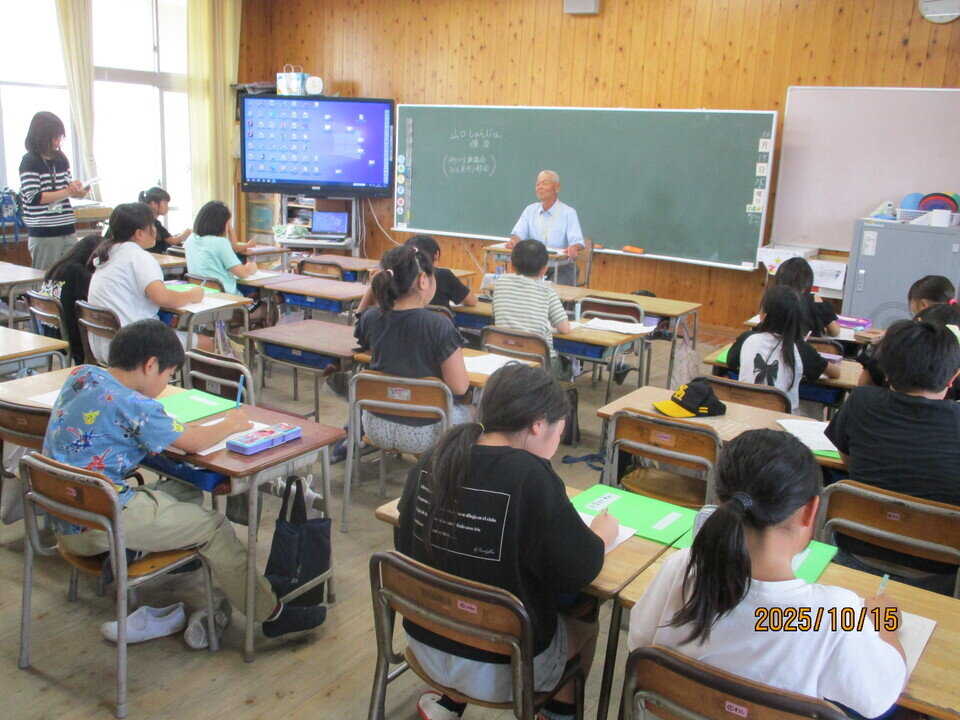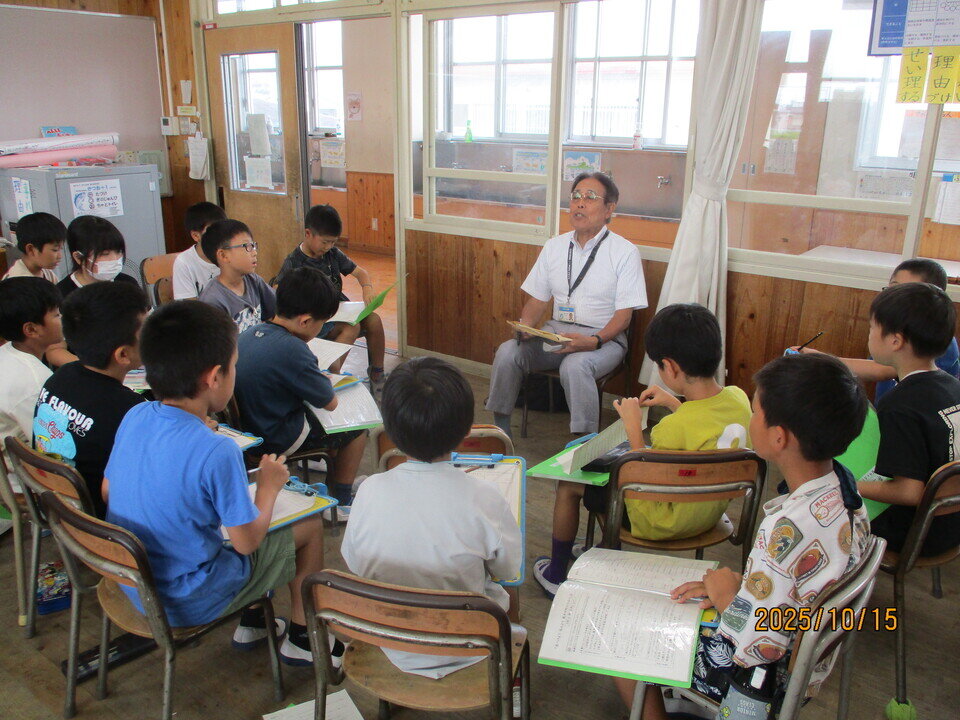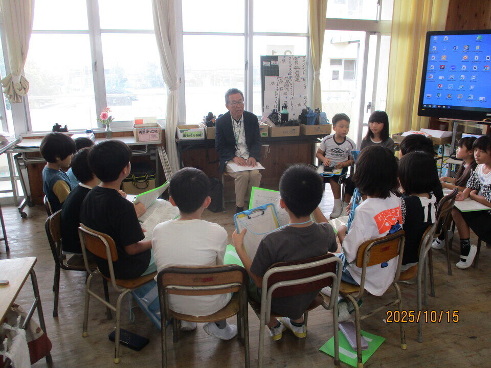 令和7年10月15日(水)午前、高木瀬小学校で3年生4クラスの総合学習に、地域ティーテャーとして館長を始め5名が子どもたちからの質問や疑問に答えました。 テーマは、6点です。①環境(自然)、②環境(地域清掃)、③町おこし(イベント)、④町おこし(子どもの遊び場)、⑤安全(防災)、⑥安全(交通安全)と多岐にわたりました。 児童たちは、興味のある分野はとても物知りで、地域ティーテャーもたじたじで授業時間に収まらないくらいに質問が出され、とても盛り上がりました。児童、地域ティーテャーともに「楽しかった~!!」でした。将来の高木瀬が楽しみですね。(授業の様子)