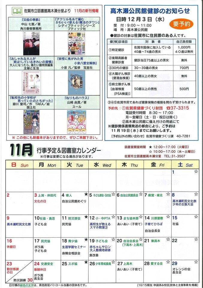 ☆佐賀市立図書館高木瀬分室より 11月の新刊情報