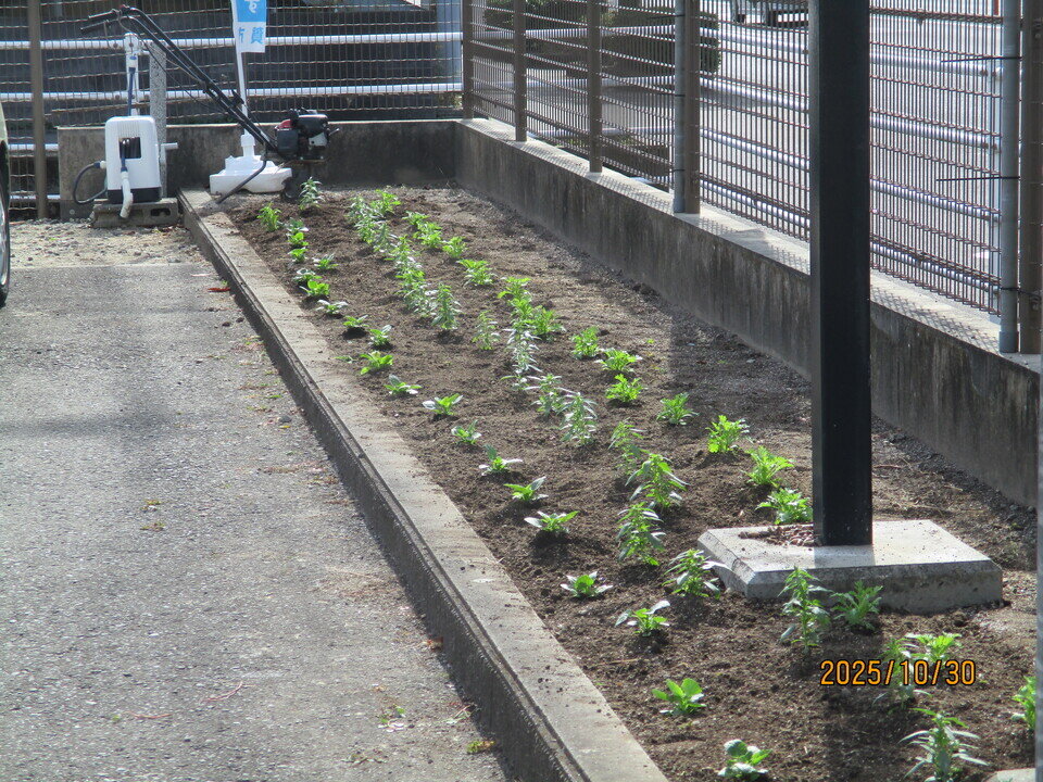 公共施設の緑化推進及び緑化啓発の一環として、佐賀市緑化推進課より配布された ・パンジー・ノースポール・キンギョソウを植えました。
