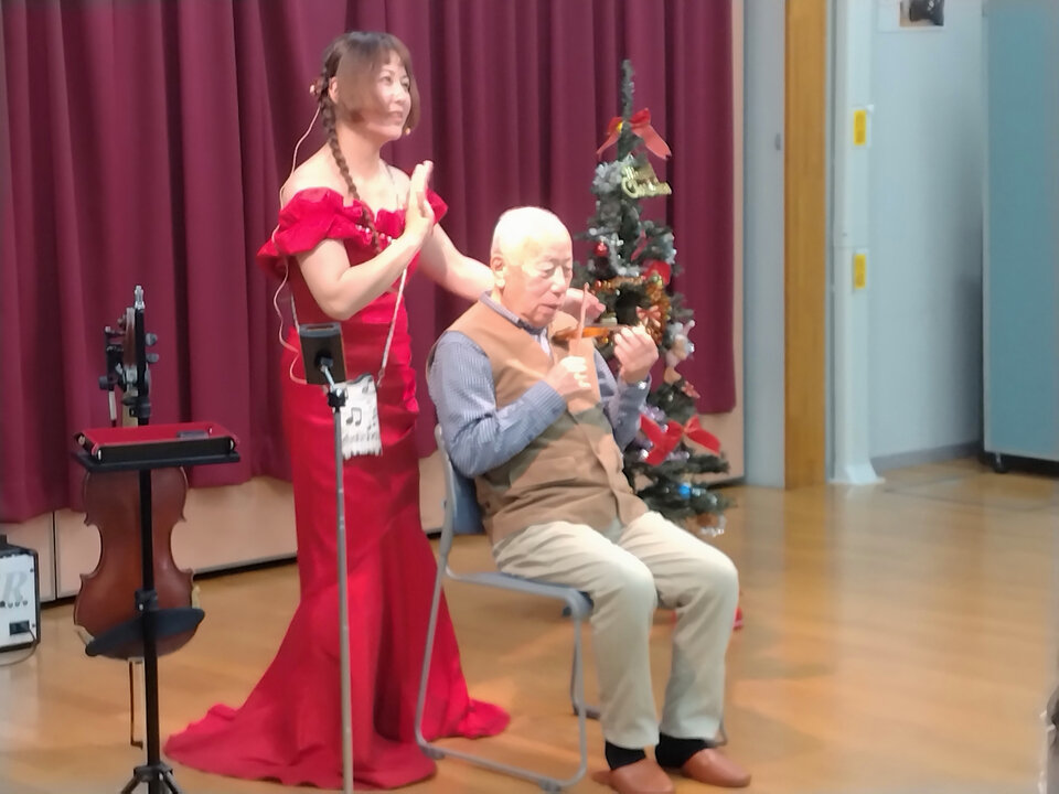 受講者の皆さんも、歌声とバイオリンの音色を楽しんでいただきました。クリスマスも華やかでいいですね。