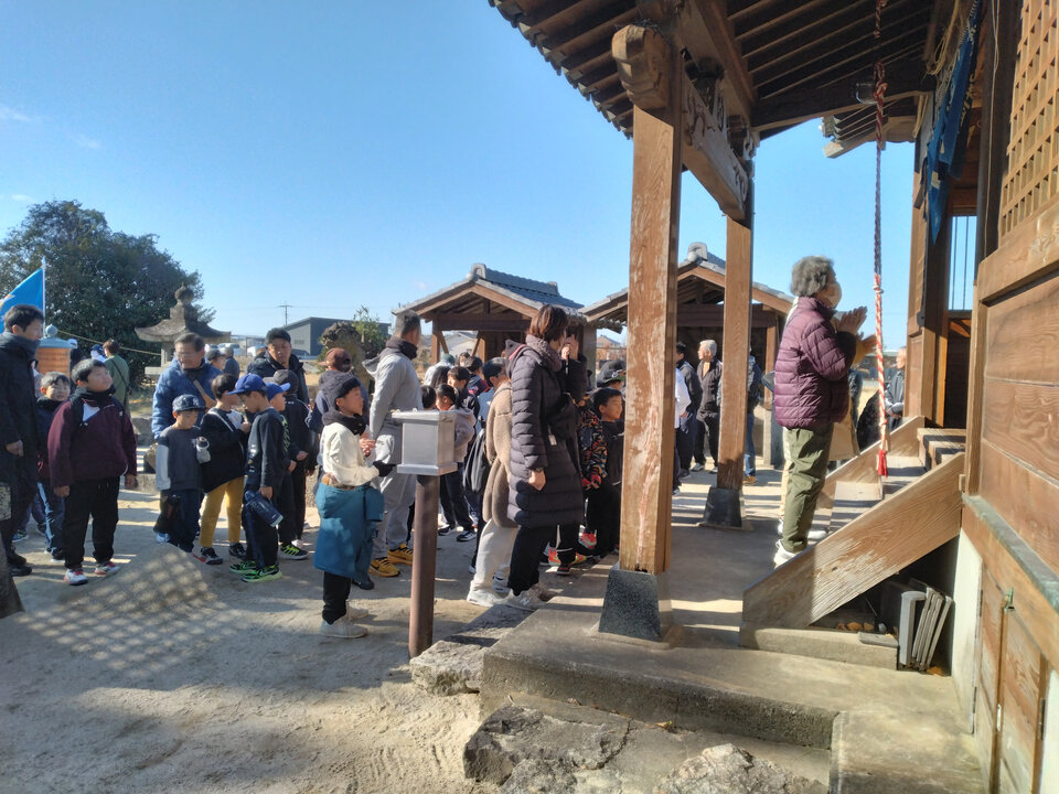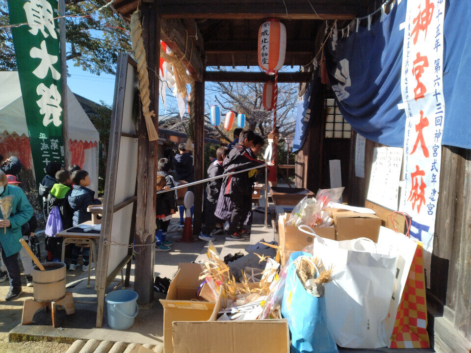 9時過ぎに高木瀬小学校を出発し、長瀬天満神社、平尾天満神社、高木八幡宮の三社を回るものです。各神社には地元の氏子さんなど多くの方が待っておられ、お茶、お神酒、おなますの準備をしてくださいました。ありがとうございました。