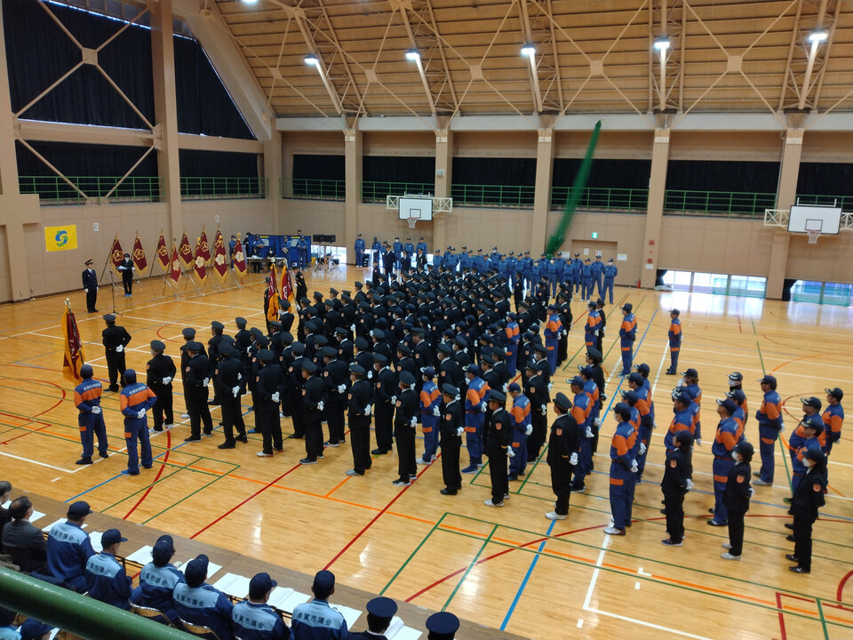 令和8年1月11日(日)9時から、市民の安全安心のため日夜奮闘している消防団員の心意気を示すため、佐賀市勤労者体育センターにおいて約300人の参加で開催されました。我が高木瀬分団からも多数の団員が参加してくれました。市長表彰や団長表彰があり、その後市長式辞、団長訓示、来賓祝辞と続きました。大分の大火、山梨県の山火事、島根・鳥取の地震など頻発する災害に対処するための決意等が述べられました。市民の安全安心のためにこれからも頑張ってください。(開会)