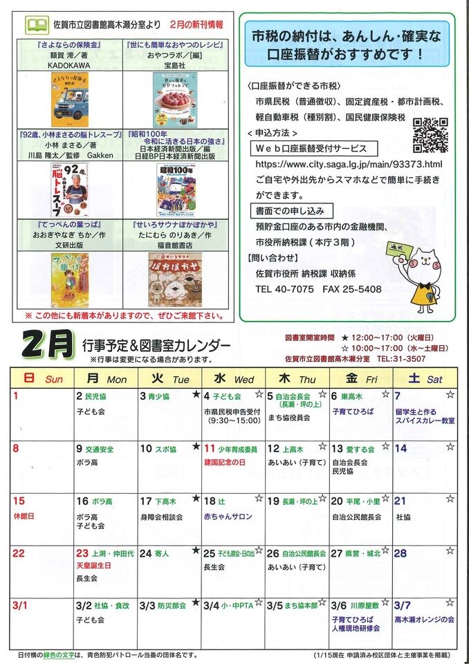 ★佐賀市立図書館高木瀬分室より 2月の新刊情報