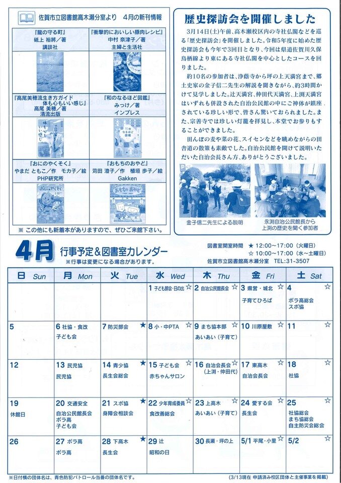 ★佐賀市立図書館高木瀬分室より 4月の新刊情報
