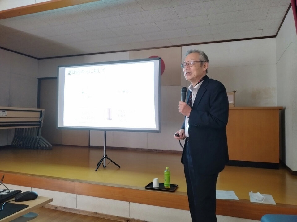 高齢化の現状を切り口に認知、それに伴う虐待について問題を解説の後、認知にならないような健康法、一読、十笑、百吸、千字、万歩を目指して体、頭を動かすことを具体的に提唱されました。