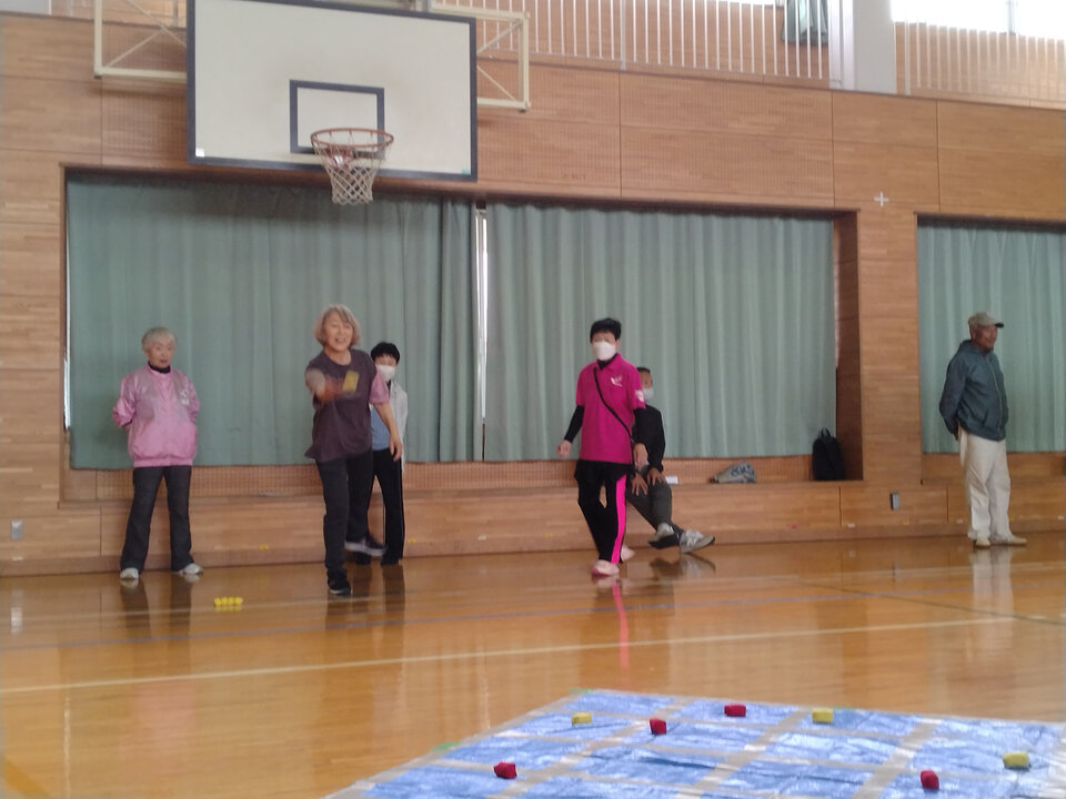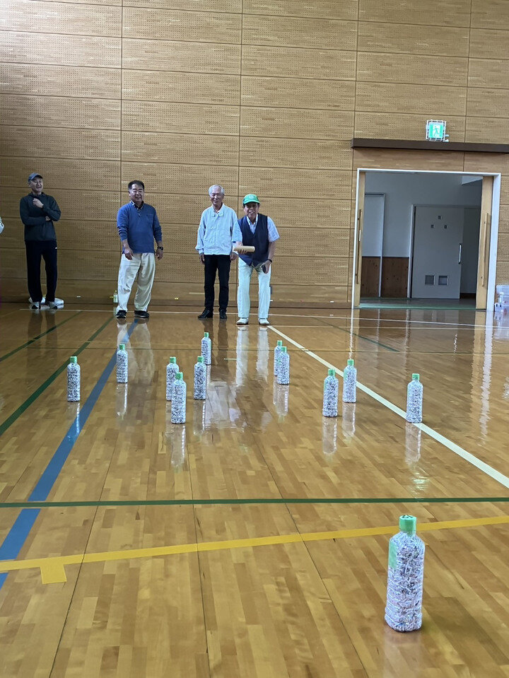 当日は雨天となったため、当初予定されていたゲートボールが中止となり、代わりに9月の大会に向けニュースポーツ2種(囲碁てだま、モルック)の紹介、講習、実践が行われ約50人の方が楽しまれました。