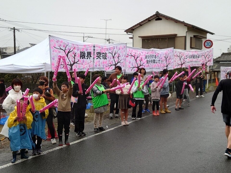 今年は降り続く雨の影響で開催中止になるかもと心配された中での開催決定。ランナーは厳しいコンディションの中でのレースとなりましたが、雨にも諦めずゴールに向かって懸命に走る姿を目にし、子どもたち感じるものがあったのではないかと思います。