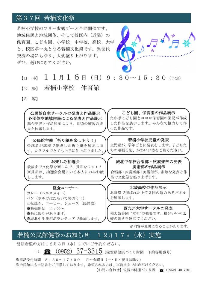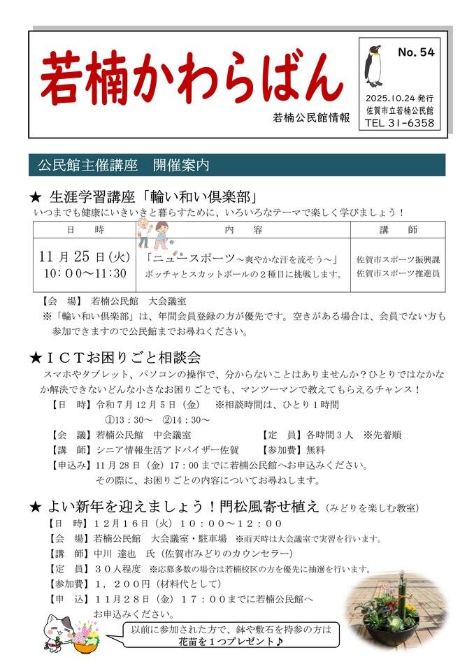 隔月発行の若楠公民館の情報誌「若楠かわらばんNo.54」です。