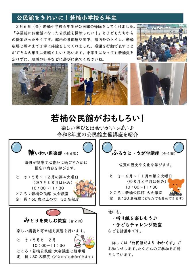 <裏面> ・公民館をきれいに!若楠小学校6年生 ・若楠公民館がおもしろい!